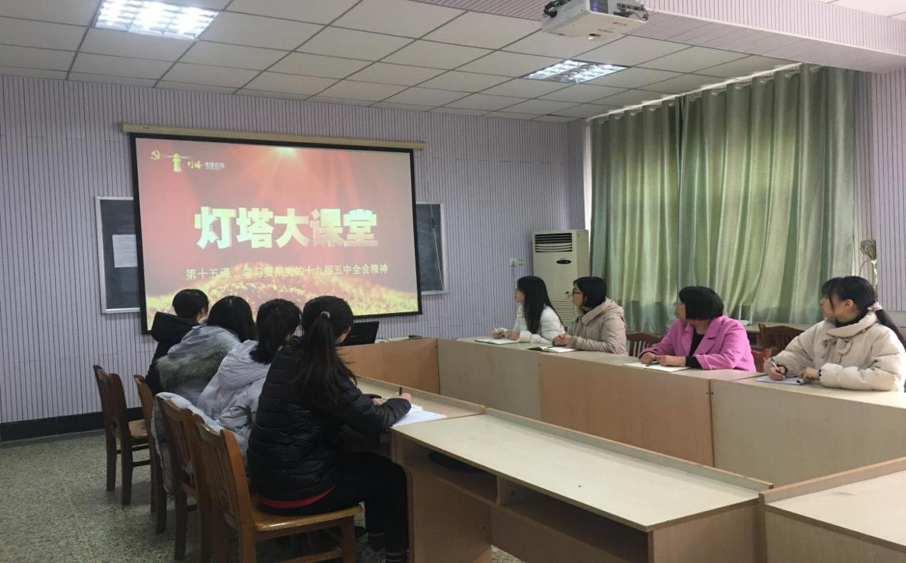 教工党支部全体党员和研究生党支部全体师生党员分别在学院会议室和8号教学楼201教室组织学习“灯塔大课堂”第十五课《学习贯彻党的十九届五中全会精神》。本期“灯塔大课堂”由中共中央党校习近平新时代中国特色社会主义思想研究中心研究员、中央党校报刊社副社长胡敏同志以“开启新征程 夺取新胜利——深入学习党的十九届五中全会精神”为题,着重强调了充分认识党的十九届五中全会的重要意义。