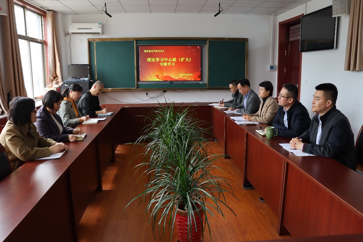 3月20日,学院党总支理论学习中心组(扩大)开展了2023年第二次集体学习。专题学习习近平总书记重要讲话和全国两会精神,传达学校部署意识形态方面的工作以及学习习近平总书记关于做好新时代党的统一战线工作的重要思想,党总支书记茌淑君主持会议。