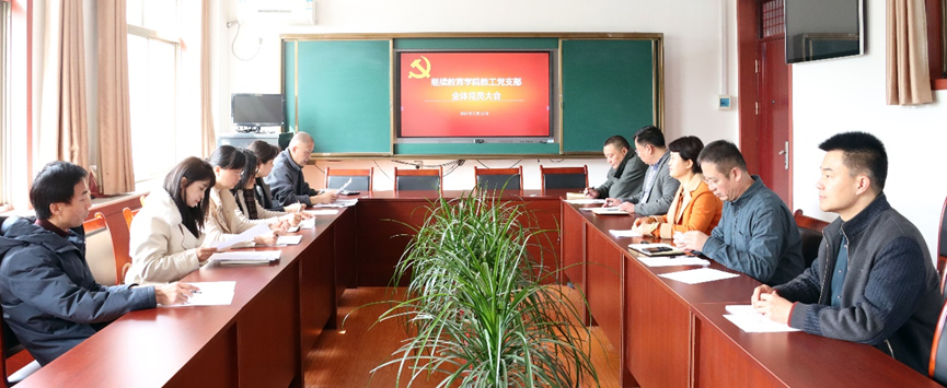 教工党支部在学院会议室召开党员大会开展民主评议党员工作。大会应到正式党员11人,实到11人。会议由教工党支部书记宋贞海同志主持。