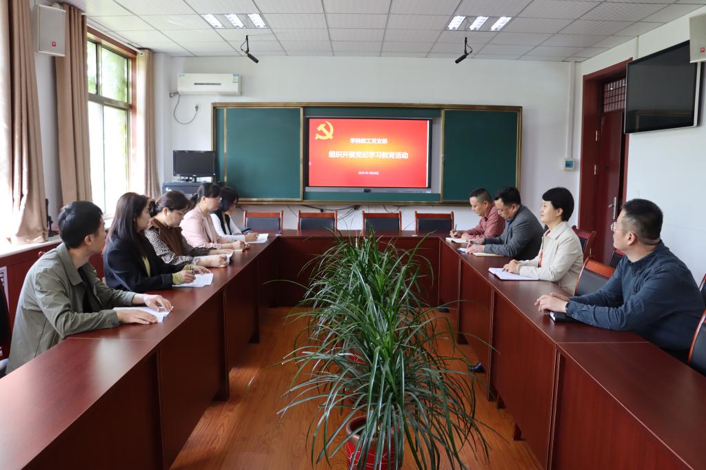 4月18日上午,学院教工党支部召开会议动员部署党纪学习教育,组织全体党员对《中国共产党纪律处分条例》进行集中学习,会议由教工党支部纪检委员李宗花主持。