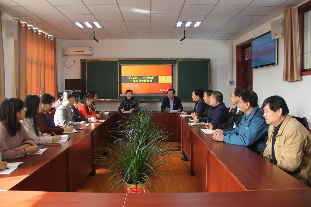 10月30日上午,学院党总支组织开展了“不忘初心、牢记使命”主题教育,党总支书记茌淑君为学院全体教职工和学生党员上了一次“不忘初心、牢记使命”主题党课。