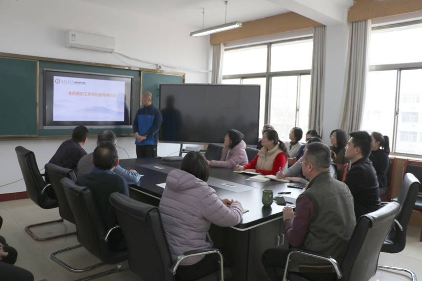 3月5日下午,学院召开了第二期常态化全员研训会,重点学习DeepSeek等AI人工智能在工作中的应用,会议由学院党总支副书记、院长范兆东主持,全院教职工参加。