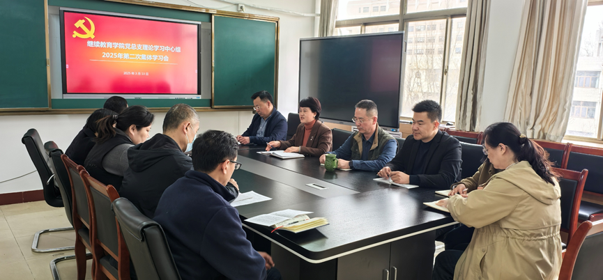 3月13日,学院党总支理论学习中心组召开2025年第2次学习会议,集中学习2025年全国两会精神和习近平总书记在中央政治局第十九次集体学习时的重要讲话精神,学院党总支书记茌淑君主持会议,中心组全体成员参加学习。