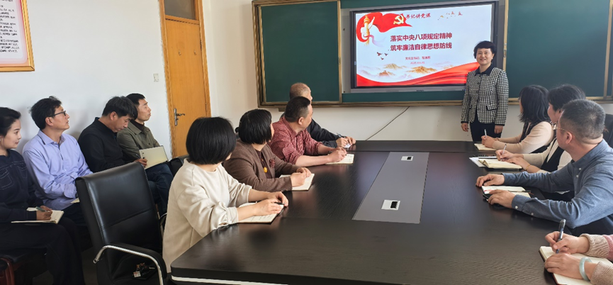 为学习贯彻习近平总书记关于加强党的作风建设的重要论述和中央八项规定及其实施细则精神,3月26日下午,学院党总支书记茌淑君以《落实中央八项规定 筑牢廉洁自律思想防线》为题,为全体教工党员讲授了一堂专题党课。