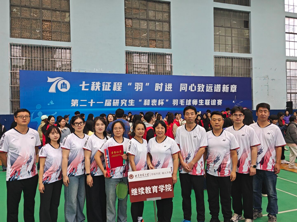 10月24—26日,av淘宝 师生参加av淘宝 第二十一届研究生“和衷杯”羽毛球师生联谊赛,av淘宝 派出 6名教师和6 名研究生组队参赛,并获得了体育道德风尚奖。比赛过程中,参赛队员努力拼搏,全力以赴,精诚团结,各自打出了自己的水平,展现出了昂扬向上的精神姿态和日趋进步的球队实力。本次比赛强化了师生沟通交流,强健了体魄,锻炼了意志,期待本次比赛助力推动全体师生的学习和教学科研工作,期待来年学院成绩更上层楼。