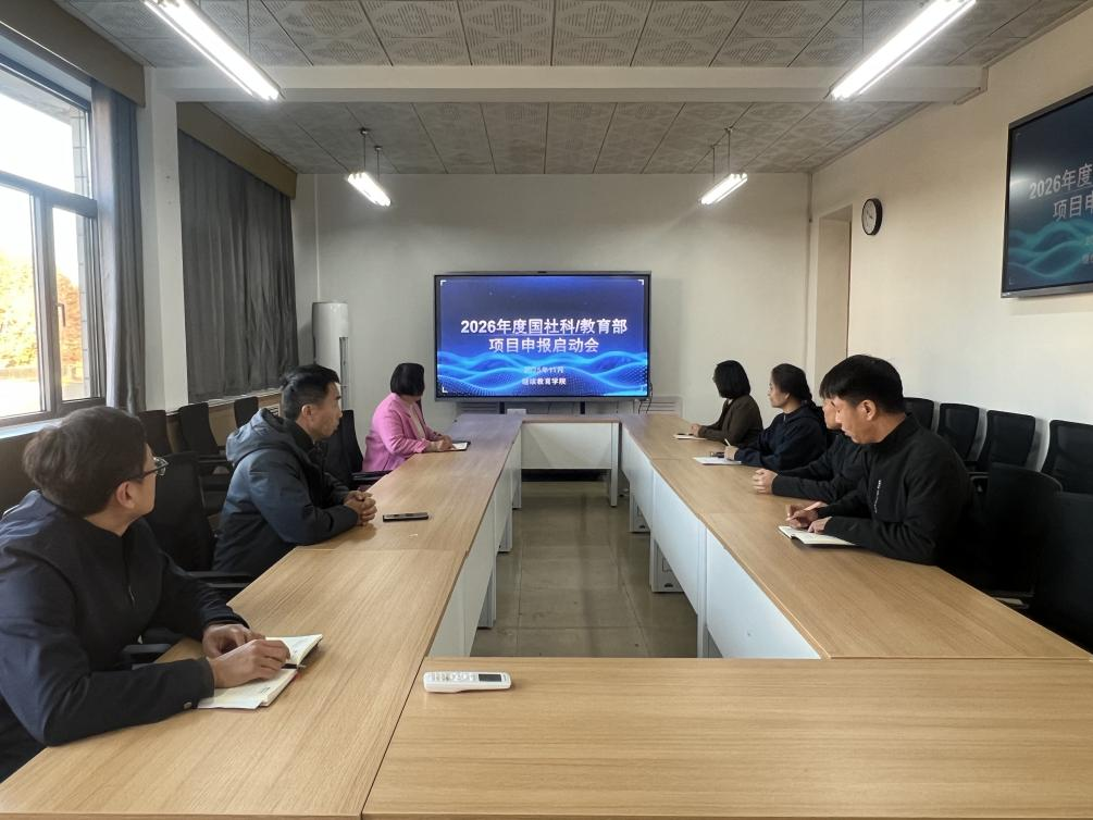 于11月12日下午召开了2026年度国家社科基金及教育部人文社科项目申报启动会。会议由职业与继续教育研究院院长何爱霞教授主持,研究院全体教师参会。