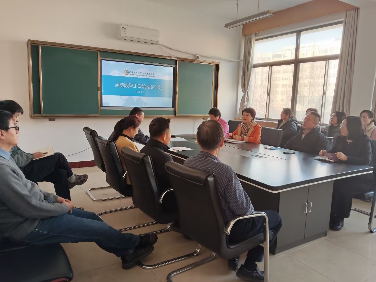 组织全体教职工开展政治理论学习。会议由党总支书记茌淑君主持。