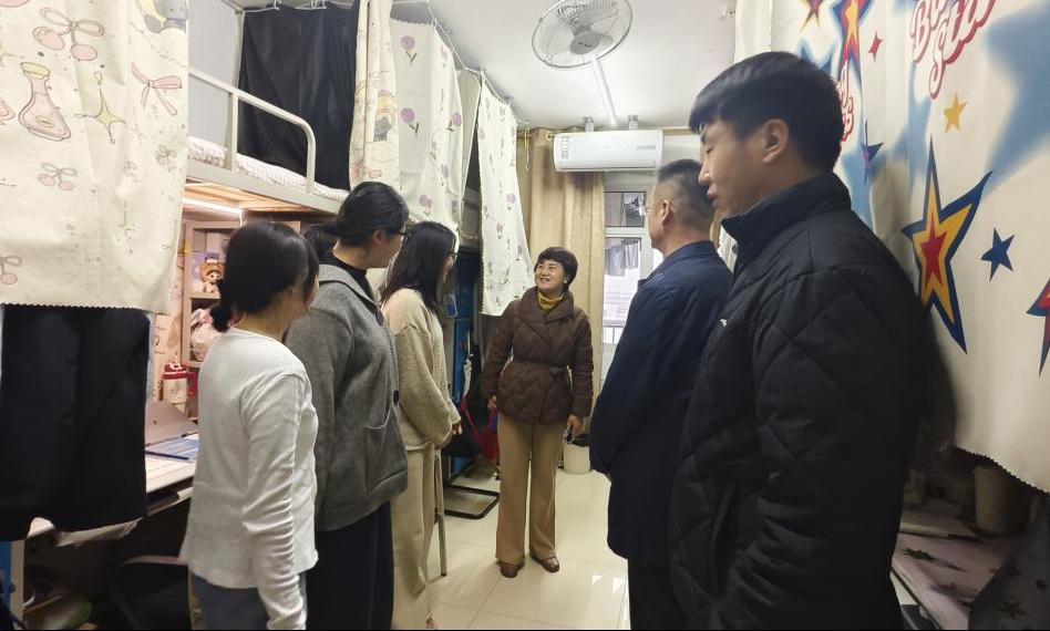 走访过程中,各位领导与同学们亲切交谈,详细询问大家新学期的返校适应情况、假期学习生活收获以及新学期的学习规划,重点了解了学位论文写作、就业择业等方面的计划与进展,以及思想心理动态。在交流中,老师们仔细察看宿舍居住环境,叮嘱同学们注意宿舍用电安全、消防安全,保持宿舍干净整洁的生活环境,养成良好的作息习惯。同时,鼓励同学们在新学期树立明确的学习目标,合理规划学业与生活,保持积极向上的心态,遇到困难及时与学院、老师沟通交流。同时强调,研究生阶段要注重自主学习能力和科研创新能力的培养,珍惜学习时光,脚踏实地提升专业素养,为未来的发展打下坚实基础。