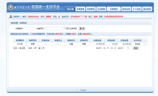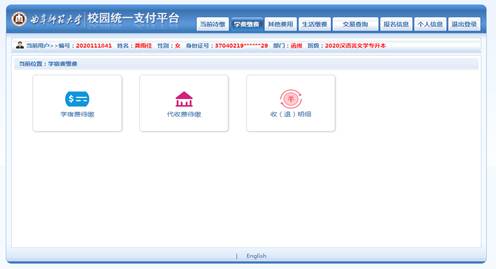 3.点击“学费缴费,出现学宿费待缴。