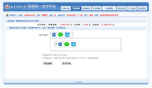 5.最后出现支付方式选择,系统暂只支持微信支付,点击确认缴费即可。