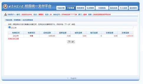 4.点击“学宿费待缴”,按照要求,点击下一步