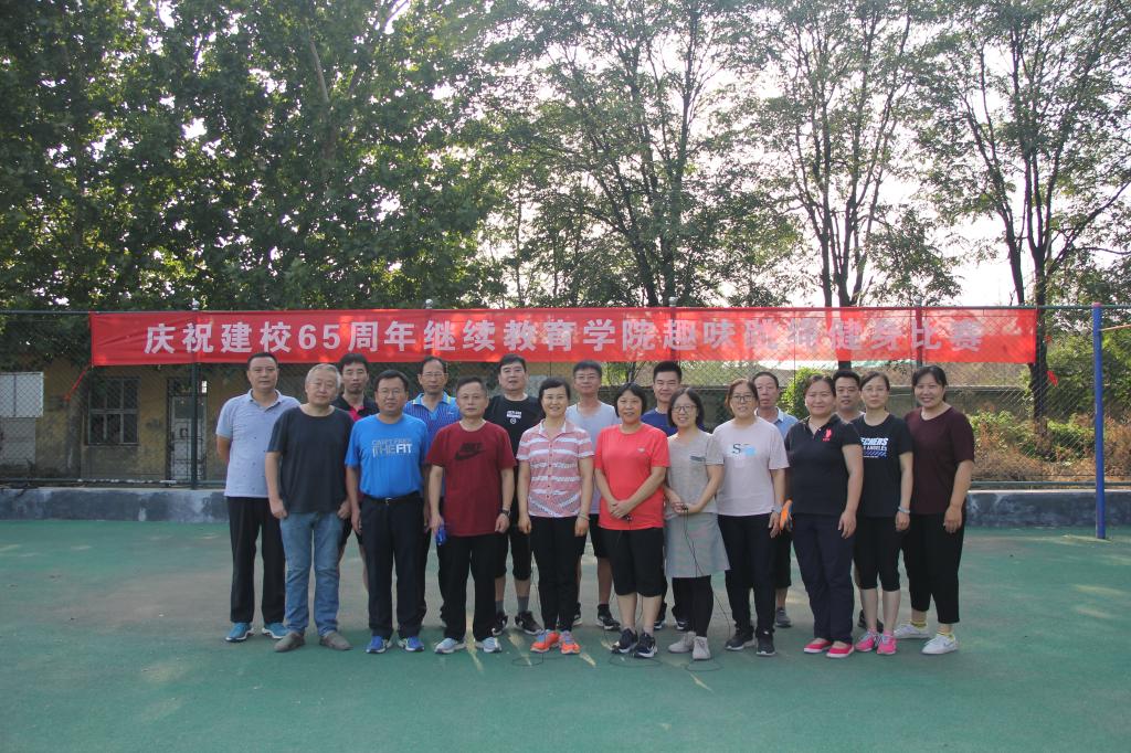为庆祝学校建校65周年,欢庆第36个教师节,抗击新冠病毒疫情,营造健康和谐、积极向上的工作氛围,树立“健康第一”的思想,倡导“我运动我健康”的理念,进一步提升团队合作精神,提高学院教职工健身运动的热情,学院分工会于9月9日下午四点在学校西操场组织了“庆祝学校建校65周年”趣味跳绳比赛,学院全体教职工参加了比赛。