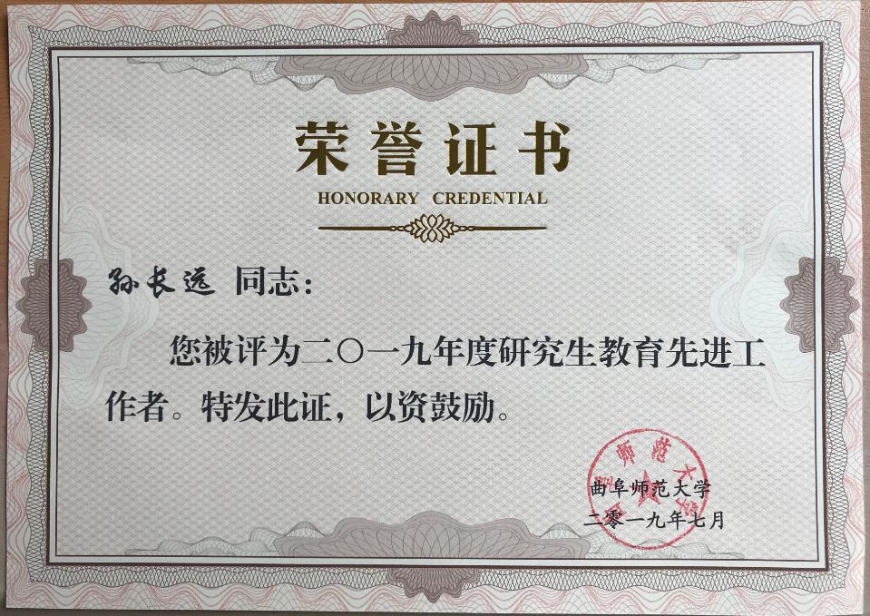 在av淘宝 2019年度优秀研究生指导教师、研究生教育先进工作者评选工作中,av淘宝 青年教师康红芹获得优秀研究生指导教师荣誉称号,孙长远获得研究生先进工作者荣誉称号。这是对av淘宝 研究生培养工作的充分肯定,也是对av淘宝 教师工作业绩的大力支持和鼓励。