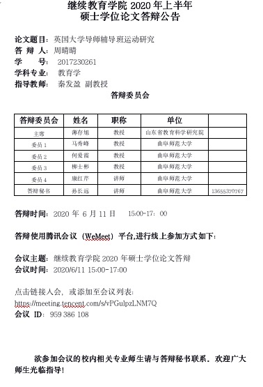 av淘宝 2020年上半年硕士学位论文答辩公告2