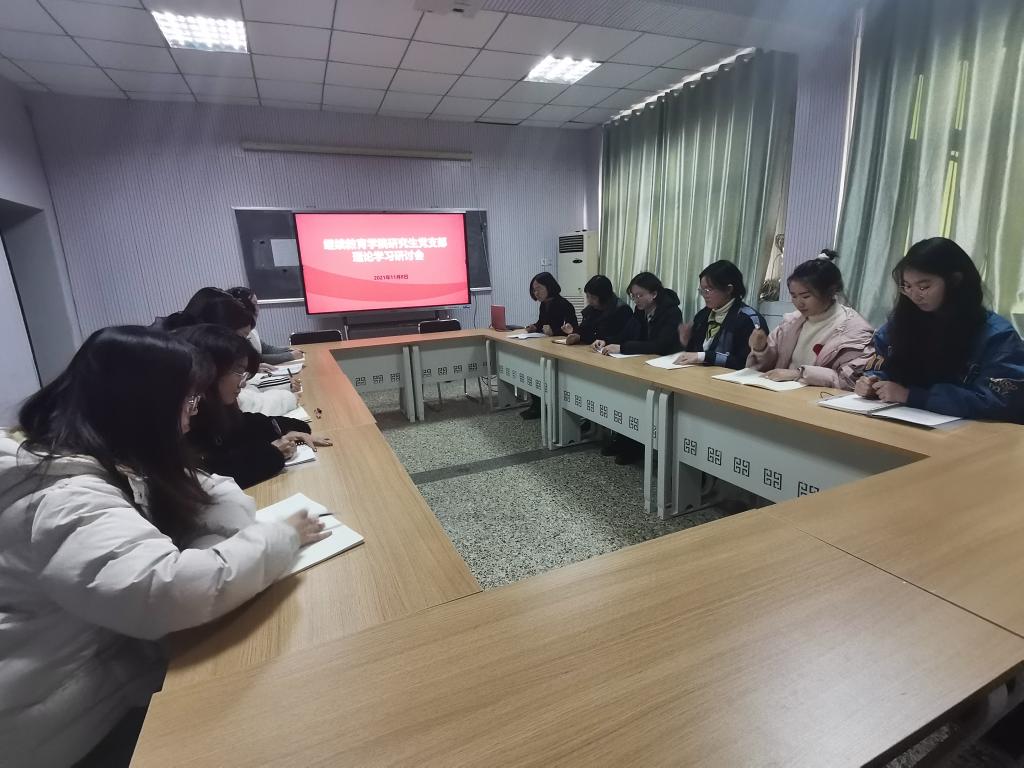 研究生党支部全体师生党员在学院201会议室开展政治理论学习活动,强化理论学习,坚持以党的最新理论成果指导实践。会议由研究生党支部书记康红芹主持。