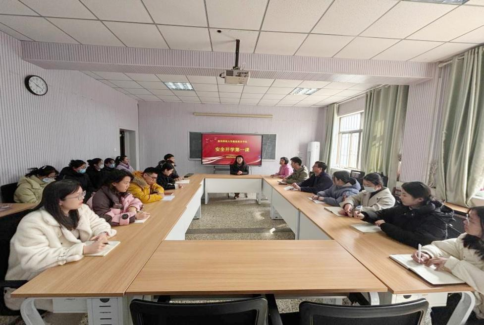 同时,茌淑君在党课中还围绕习近平总书记关于学校安全工作的重要指示精神,面向全院师生就防火灾、防触电、防诈骗及防地震等相关安全防范知识进行了宣讲,引导师生要及时发现隐患、规避风险,树立安全责任意识,她特别强调研三同学在学习、就业等过程中更要注重人身、交通的安全。同时,她还指出,高校意识形态安全是国家安全战略中不可或缺的重要一环,加强高校意识形态安全教育是一项重大的战略工程,要求全体师生在工作、学习中坚持不懈用习近平新时代中国特色社会主义思想凝心铸魂,筑牢高校意识形态安全屏障,不断增强本领,为社会主义现代化建设服务。在主题教育活动中,全体师生一起观看了《生命重于泰山》宣传教育片,接受安全警示教育,进一步增强了全体师生的安全意识。活动结束后,茌淑君一行到研究生自习室开展安全检查,要求学生在自习室学习时注意用电等安全,积极营造舒适、安全的学习环境。最后,茌淑君祝愿大家在新学期以新面貌开启新征程
