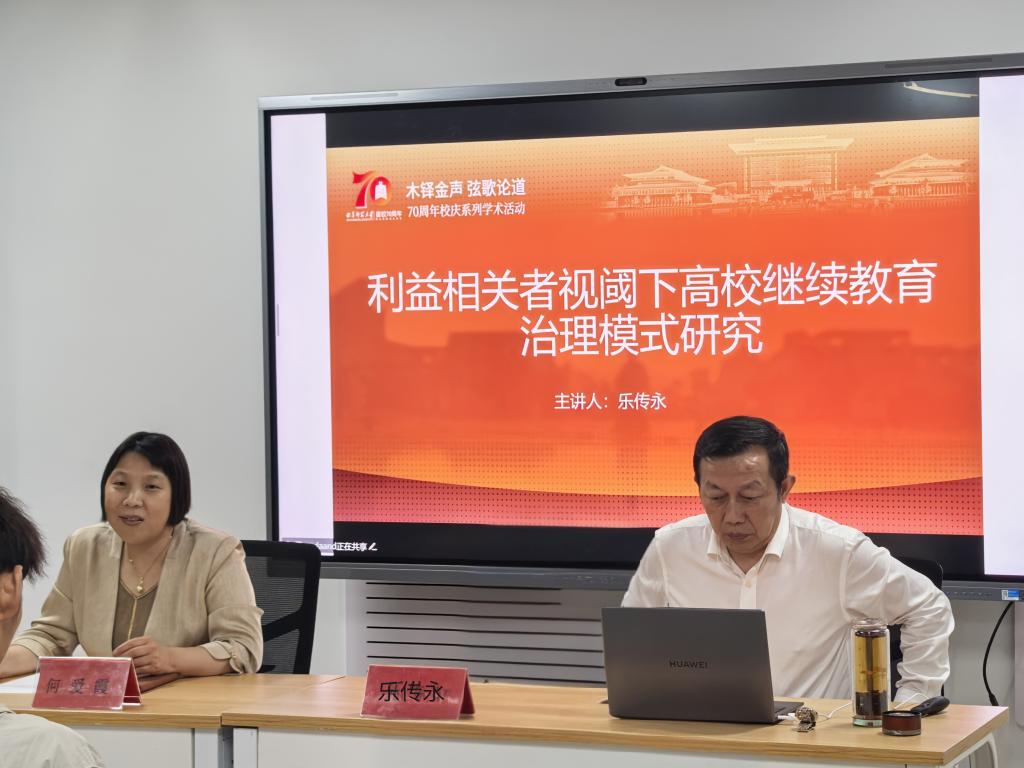 特邀国务院政府特殊津贴专家、台州学院校长乐传永教授作《利益相关者视阈下高校继续教育治理模式研究》专题报告。报告由职业与继续教育研究院院长何爱霞教授主持,全院师生代表参加活动。