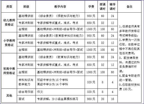 2.培训方式:统一组织、编班,全部课程面授,利用周末和晚自习在校内上课 。 (委托具有教师资格证培训资质的济南大圣培训学校完成培训工作)